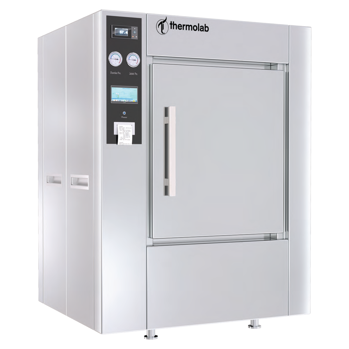 Mechanical door pulse vacuum sterilizer autoclaves with chamber volumes ranging from 250 Litres to 4000 Litres. Available with one or two hinged door with automatic locking.